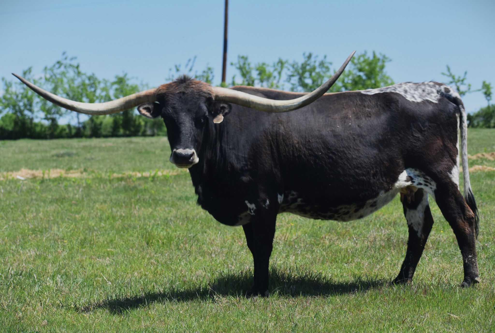 She has a heifer calf at side by CLEARMAN LV (a 6 time HSC CHAMPION) She is a great producer and exceptional mother. She passes on great color, horn and body. Her son BACKFIRED LOVE LV. Is one of our main herd sires, and has already passed the 90" tt as a young 4 year jold