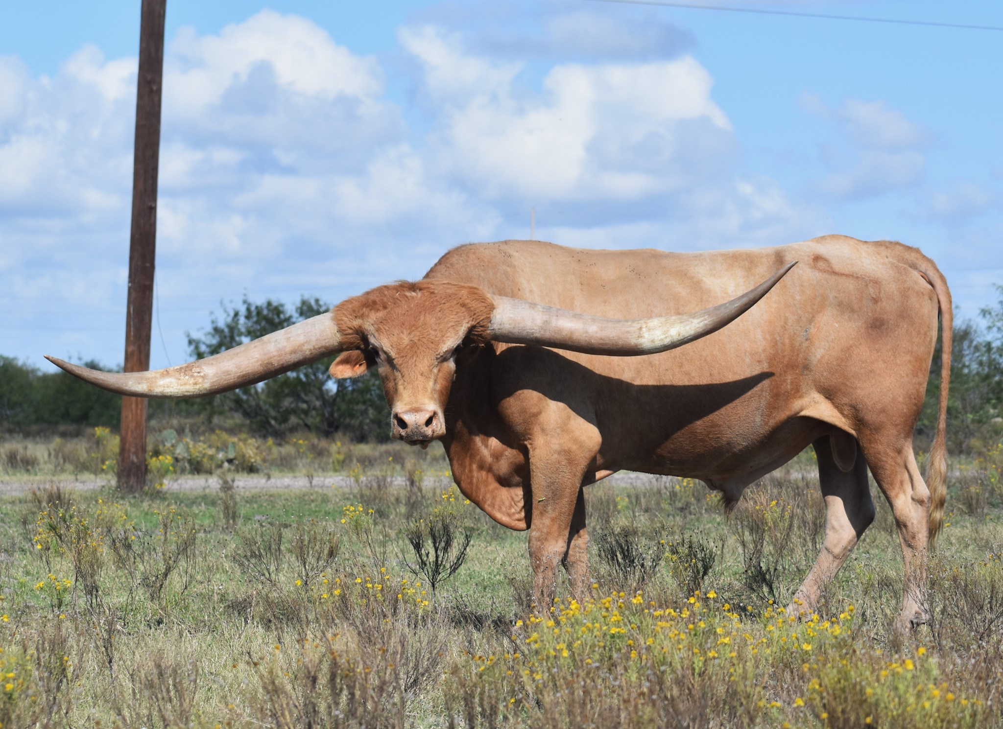 Incredible horn growth in the past year for this golden brindle bull. He is the fastest growing bull to 36 months on record.